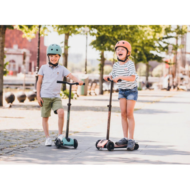 The Highwaykick 5 is the ultimate kickboard for kids and adults. The high grip and shock-absorbing jumbo wheels with white led wheels on the front, and the durable sandwich construction allow a 80 kg payload easily. The deck comes extra wide and extra long with anti-slip rubber. The height-adjustable T-bar can be removed with a simple push of a button.