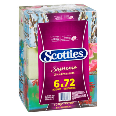 Rated 4 out of 5 by from Great until now I always buy the 6-pack of Scotties Supreme 3-ply tissues. I noticed that tissues from the most recent purchase weren't really doing the job and I usually needed two of them to do the job that one used to. I realized that they felt thinner. When I looked more closely, I discovered they were just 2-ply but in a 3-ply box. It seems all 6 are like this. I've included two photos: one of the new tissues, and one from a box I had purchased last time around. I hope this is an anomaly and not the new normal.