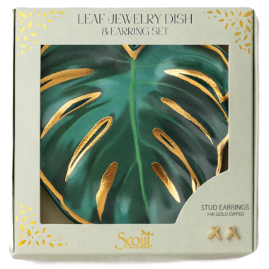 Scout Curated Wears Jewelry Dish & Stud Earring Set Sage Leaf