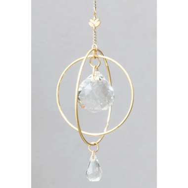 Captured sunlight transforms into beautiful rainbows that spread joy. Crafted from brass, semi precious gemstones and crystal.