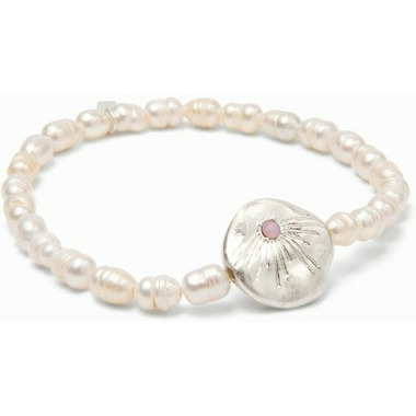 Elevate your spirit with tokens of affirmation! Natural rice pearls are intertwined with organically shaped medallions on each bracelet.