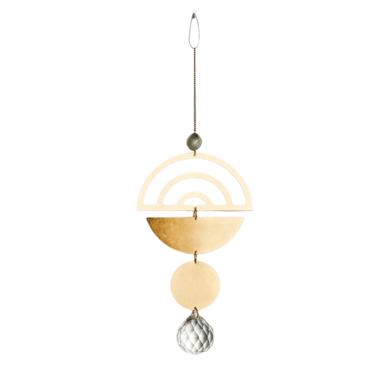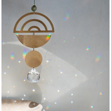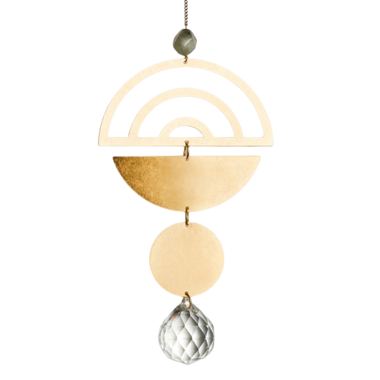 Captured sunlight transforms into beautiful rainbows that spread joy. Crafted from brass, semi precious gemstones and crystal.