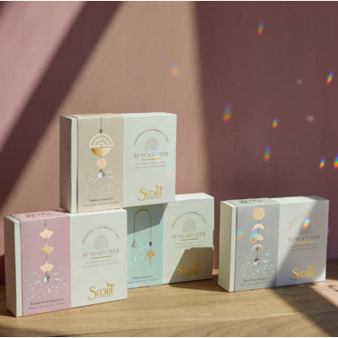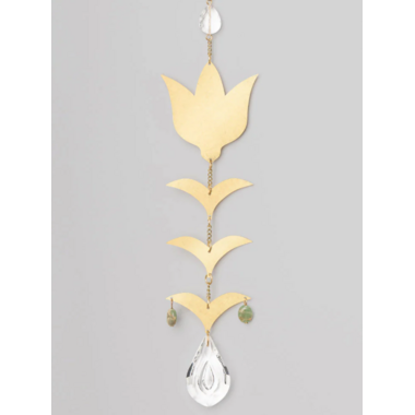 Captured sunlight transforms into beautiful rainbows that spread joy. Crafted from brass, semi precious gemstones and crystal.