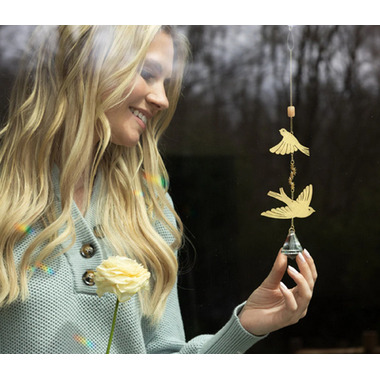 Crafted from brass, semi precious gemstones and crystal. Comes packed in muslin bag inside a box that tells the name of the stone. Inclides a suction cup with a metal hook included to easily attach to windows.