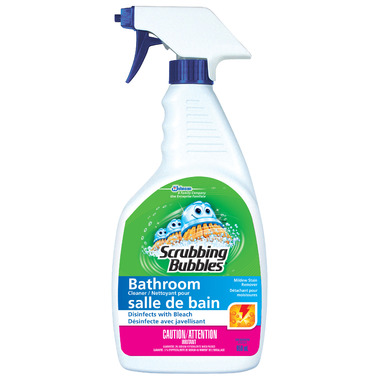 Scrubbing Bubbles Bathroom Cleaner with Bleach is tough enough to handle all kinds of bathroom grime! That’s because Scrubbing Bubbles deep penetrating foaming action thoroughly cleans, shines, and disinfects. Scrubbing Bubbles Bathroom Cleaner with Bleach disinfects, killing bacteria, viruses and fungi. No scrubbing required. Leaves a brilliant shine and a bathroom feeling clean and fresh.