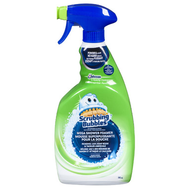 Scrubby calls it the mean dean of clean! Introducing Scrubbing Bubbles Mega Shower Foamer. Its foaming, grime-busting formula wont bristle at any job. Mega Shower Foamer works on contact to remove 100% of soap scum with a powerful clean that smells amazing. The penetrating foam provides our widest spray and our fastest clean to quickly cover tough bathroom grime on showers and tubs. So, bring on the shower power! This big-time foamer is not just known for its bubbly personality. Power through dirt and grime to leave a sparkling shine. That's cleaning reinvented.