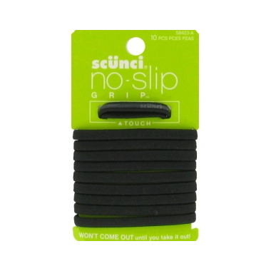 Scunci No-Slip Grip Hair Elastics provide super stay hold and won't come out until you take them out. These are perfect when you're on the go and need your hair to stay in place.