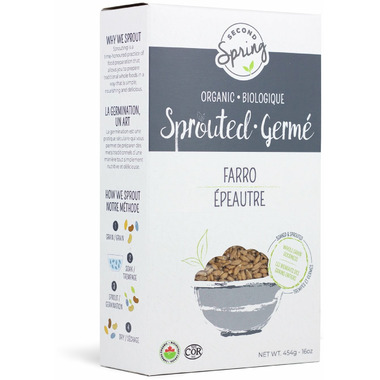 Second Spring Organic Sprouted Farro is soaked and sprouted. This whole grain goodness is certified organic.