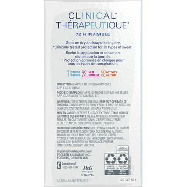 Secret Clinical Strength Antiperspirant and Deodorant for Women Invisible Solidincredible protection, no matter what the day may bring.