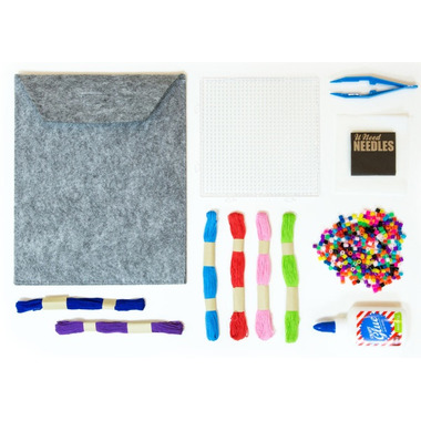Protect your digital gear in style while on the go. Showcase your creative side by adding your own customized design to a soft tablet case. This DIY craft kit comes with fabric, bright beads, and a colourful assortment of embroidery thread to create an original look. It measures 8.5 x 10 inches and fits most tablets on the market today. Recommended for ages 7 - 12.