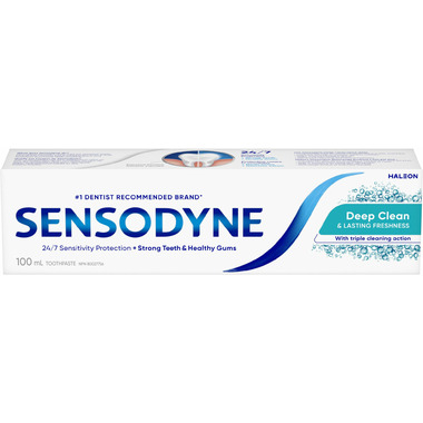 Sensodyne Deep Clean Daily Toothpaste for Sensitive Teeth is clinically proven to build on-going protection over time for sensitive teeth, working 24/7 to help relieve sensitivity pain. Thanks to its Foam Boost technology, it helps deliver advanced cleaning, leaving a lasting sensation of freshness.