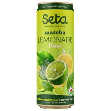 It's everything to love about lemonade, with only 8g of sugar per can. Seta has added a touch of matcha green tea for gentle, sustained energy. Plus, it's enriched with prebiotic and probiotic fibers to support good digestive health. A delicious lemonade, enhanced with a hint of green tea, evokes the pleasures of iced tea! It's a refreshing, non-carbonated drink, available in two delicious flavors: lime and peach.