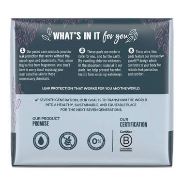 Seventh Generation Chlorine-Free Pads Ultra-Thin with Wings Super Long