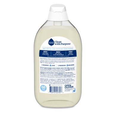 Life is complicated. Laundry shouldn't be. With Seventh Generation's new EasyDose Ultra Concentrated Liquid Laundry Detergent, you get the right amount of liquid every time. Just flip the bottle, give a firm squeeze, and you're done. One squeeze is all you need! SVG's compact 23oz bottle gives you the same 66-load convenience you expect, but uses 60% less plastic, 50% less water, and is 75% lighter than the 100 oz bottle.