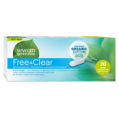 Have peace-of-mind protection with Seventh Generation Organic Cotton Tampons. These tampons offer comfort and reliable protection with 100% organic cotton.  The certified organic cotton, is whitened without chemicals containing chlorine, and is free of added fragrances and dyes.