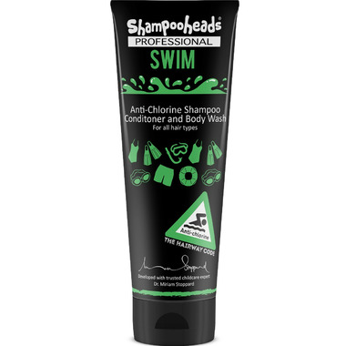 Shampooheads Professional Swim is a 3-in-1 Shampoo, Conditioner, and Anti-Chlorine Body Wash takes care of swimmers’ hair and skin often damaged by sea, salt, pollution and pool chemicals. Specifically formulated for teens and tweens.