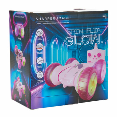 Flip, spin, and shine with the Sharper Image Lumina RC Stunt Car. This double-sided remote control car features bright LED lights and 360ΰ stunt action that keeps kids entertained for hours. Built to flip over and keep going, the Lumina never pauses the fun even control, itגs the perfect vehicle for young drivers. The included 2.4GHz wireless remote delivers smooth, interference-free control from across the room. Recommended for ages 6 and up, the Lumina is a great gift for kids who love high-energy play.