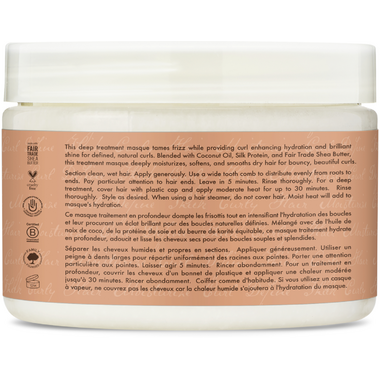 Shea Moisture Curl & Shine Coconut & Hibiscus Hair Masque is enriched with naturally derived ingredients and an anti-frizz formula to give you soft, silky and defined curls!