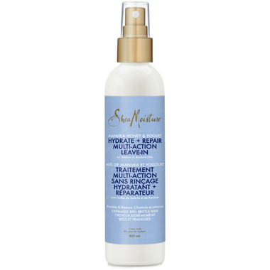 • SheaMoisture Hydrate + Repair Multi-Action Leave-In hair treatment with Manuka Honey & Yogurt absorbs quickly to recondition, strenghten, and smooth abused hair