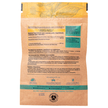 SHINE Energy includes adaptogenic herbs to increase energy and resistance to stress in case of mental and physical fatigue. Includes a proprietary blend of Canadian grown American Ginseng and AlphaWave L-Theanine that support mental energy, focus, and cognitive function. Great for both women and men.