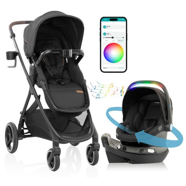 Have it all and more with the Evenflo Shyft Intuiti+ Travel System featuring Revolve180 LiteMax NXT Rotational Infant Car Seat with SensorySoothe. This travel system provides a lightweight, luxury stroller for a smooth, fine-tuned ride and an exclusive rotational infant car seat that will wow you. Integrated into Revolve180 LiteMax NXT’s handle, one-of-a-kind SensorySoothe technology engages and calms your baby with lights, music and sounds. Cue a mesmerizing light show via the Evenflo app on your phone! Integrated SensorSafe technology adds a layer of protection. Designed for infants 1.4-10 kg (40-74 cm), the infant car seat offers one-hand, 180 rotation for easy in and out.