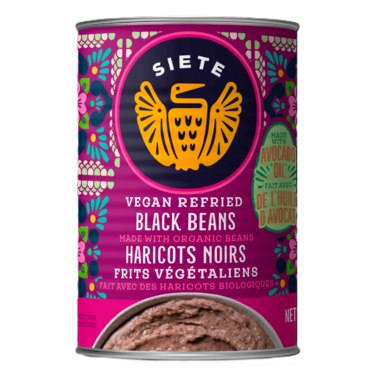 Siete Vegan Refried Black Beans made with organic beans. Made with Avocado oil.