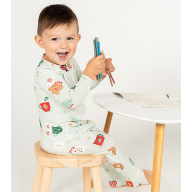 Get ready to make this holiday season extra special! Wrap your little one in comfort and creativity – where softness meets imagination. Made from ultra-soft, eco-friendly bamboo fabric, this cozy footed sleeper is gentle on baby’s delicate skin, breathable for all-night comfort, and naturally hypoallergenic.
