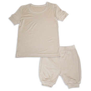 Silkberry Baby Bamboo Short Sleeve Top And Short Pajama Set Almond Milk