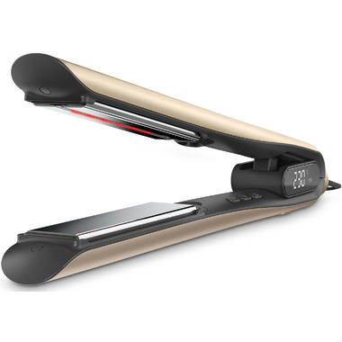 The SilkyStraight uses infrared technology and releases negative ions for better protection of your hair quality, resulting in sleek results and less frizz. By using infrared technology, the hair heats up from the inside while the titanium plates work on the outside of the hair. This ensures styling on lower temperatures and reduced styling time, minimizing hair damage. At the same time, the SilkyStraight releases negative ions to close the cuticles and help preserve the natural hair oils, keeping your moisture locked in. It is an ideal tool for all hair types, even dry or damaged hair.
