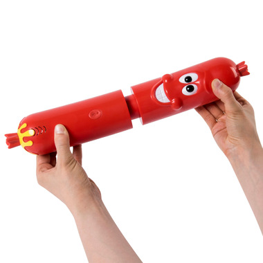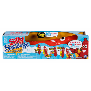 Meet Silly Sausage, the interactive toy that packs tons of fun into one big hot dog! See if you can follow his commands and “twist,” “shake,” “poke,” “stretch,” and “dip” as he goes faster and faster! For even more of a challenge, set Silly Sausage to turbo mode and go at warp speed!