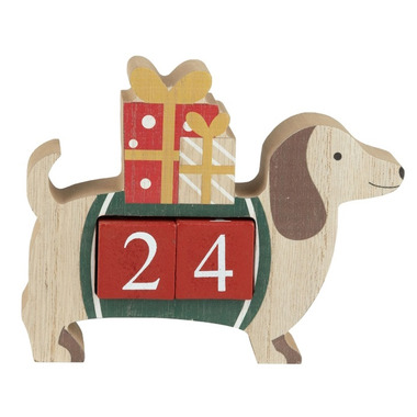 Countdown to the holidays with this charming wooden dog block advent calendar! A playful pup dressed in a jolly green outfit hides a delightful stash of surprises behind each block, making every day a festive little adventure.