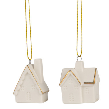 This 2-inch ceramic White House ornament features an A-frame design with elegant gold trim, making it a perfect addition to any holiday decor.