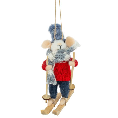 Meet a charming little mouse ready for winter adventures! Crafted from soft felt in cheerful red and blue, this tiny skier sports a cozy knit hat, bringing playful warmth to every snowy escapade.