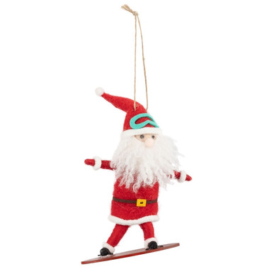 Jolly old Saint Nick swaps his sleigh for a snowboard in this playful felt ornament, catching air and spreading cheer with every festive ride.