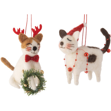A charming pair of snowy-white kitties with cozy brown details, ready to curl up on your holiday wreath or dangle playfully from the garland. Softly felted and irresistibly sweet, these 5-inch ornaments bring a touch of whimsy and warmth to any festive display.
