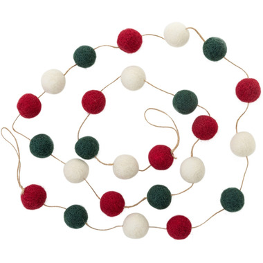 Garland With Felt Balls In Red, Green And White On Jute Cord - approx. 71 Inches