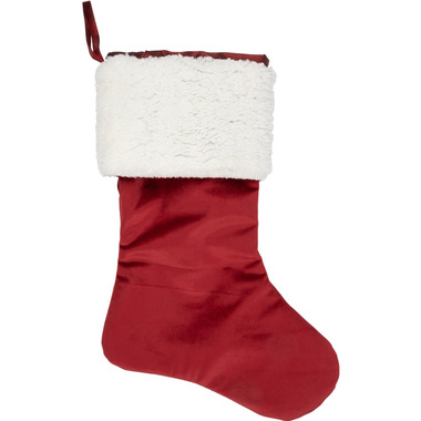Red Velour Stocking With White Boucle Cuff, Loop For Hanging, approx 18 Inches