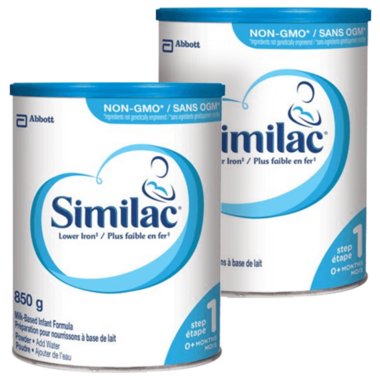This Bundle includes x 2 Similac Step 1 Lower Iron Milk-Based Infant Formula Powder (0+M) 850g.