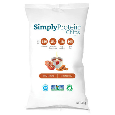 Simply Choices Simply Protein Chips BBQ Tomato are savoury and delicious! Sweet foods can be addictive - that’s why Simply Protein created a savoury and crunchy snack! Enjoy by the bag, as a topping on soups and salads, or as a healthy addition to savoury recipes. Each 33 gram bag has 15 grams protein, 140 calories and only 2 grams of sugar!