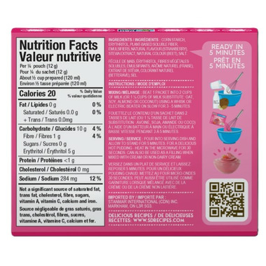 Serving: pour into serving dish and allow to stand for 5 minutes. For delicious hot pudding – heat in microwave for 30 seconds. Can also be used as a filling when mixed with cream/non-dairy cream.