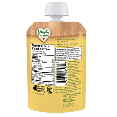 Baby Gourmet Simply Gourmet Fruit & Yogurt Smoothie Apple Banana Strawberry