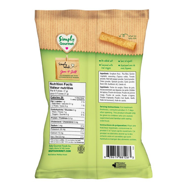 Sorghum flour, Pea fibre, Garden vegetable seasoning (Tapioca solids, Tomato powder, Red Bell pepper powder, Carrot powder, Onion powder, Spinach powder, Garlic powder, Basil, Dill, Sunflower oil), Canola oil