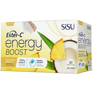 Sisu Ester-C Energy Boost is a daily, re-hydrating vitamin drink mix enhanced with 1000 mg of Ester-C Vitamin C and nourishing vitamins, minerals, and electrolytes.