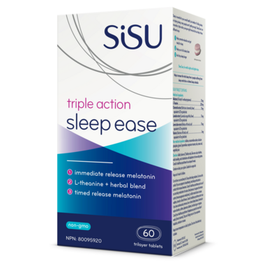 Sisu Sleep Ease is an easy-to-swallow, triple-action formula to help you relax, fall asleep faster and stay asleep longer to get the quality rest you need to function at your best. An innovative combination of melatonin in both quick-dissolving and timed-release forms with L-Theanine and a botanical blend, in just one easy-to-swallow tablet per night.