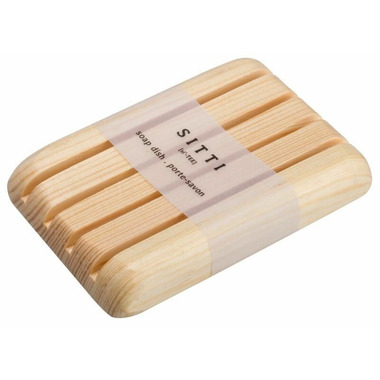 Made of pine wood, this soap dish has a light raw appearance and feel.