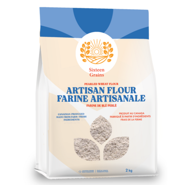 Sixteen Grains Pearled Wheat Artisan Flour. Canadian produced and made from farm fresh ingredients.