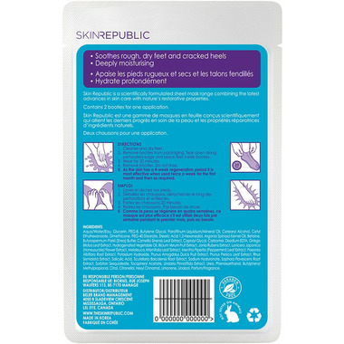 Directions: Apply booties to clean, dry feet. Cleanse and dry feet. Wear for 20 minutes. Remove booties. Do not rinse.