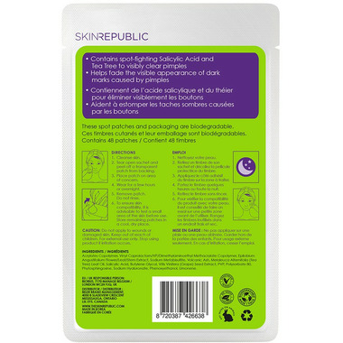 48 transparent patches with Salicylic Acid and Tea Tree to visibly clears spots, blemishes and pimples overnight. Volcanic Ash helps draw out dirt and impurities, helping to prevent the return of spots.