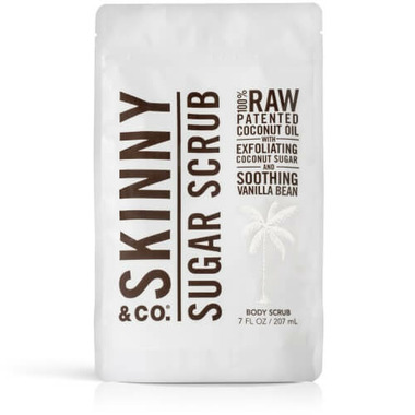Skinny & Co. Coconut Sugar Body Scrub Bag Vanilla gently exfoliates face and body.
