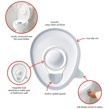 • Smooth, easy-clean surfaces , Fits most toilets , Works great with Skip Hop Double-Up Step Stool